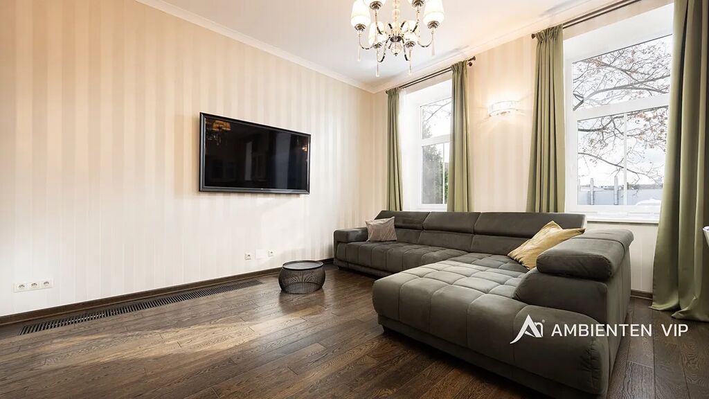AMBIENTEN VIP si vám dovoluje nabídnout k prodeji luxusní bytovou jednotku po kompletní a nákladné rekonstrukci. Nachází se v lukrativní městské části Brno – střed, v blízkosti brněnského výstaviště a Mendlova náměstí v dosahu veškeré dopravní infrastruktury, obchodů a restaurací. Jen pár kroků vás dovede k řece Svratce, kde je nově zbudované nábřeží s možností úžasných procházek a na dosah máte také cyklostezku a školy pro děti. Nemovitost majitelé velice citlivě opravili a svým vkusným provedením nadchne i náročné klienty. Vytápění bytu a ohřev vody je přes vlastní plynový kotel. Jelikož jsou v bytě vyšší stropy, tak působí velice prostorně a vzdušně. Nabízí se zde možnost snadného přebudování na 4+kk v případě potřeby. Kuchyně je od firmy Schmidt kuchyně na míru s vestavnými spotřebiči Miele (lednice, mrazák, varná deska, digestoř). Dominantou celé kuchyně je na míru provedená žulová deska v kuchyni a dále stejná žula se nachází i na podlaze vstupní chodby, která dává bytu osobitý charakter a díky tomu dává bytu punc luxusu. Bytová jednotka disponuje dvěma prostornými pokoji o výměrách 21,27 m² a 26,9 m² a otevřenou dispozicí obývacího pokoje s jídelnou a kuchyní o výměre 41,97 m². Samostatná toaleta má výměru 1,12 m², technická místnost s pračkou a sušičkou má výměru 4,34 m², koupelna s vanou, sprchou, umyvadlem a toaletou má výměru 12,3 m² a disponuje vlastním balkonem. Podlahy v bytě jsou dřevěné masivní, které byly realizovány stejně jako celý byt v nadstandardu dle přání majitelů. Ona jsou plastová dvojskla, plynový kotel je do firmy BRÖTJE. Zdivo budovy je cihla s tloušťkou venkovních stěn 65 cm. Měsíční náklady činí za elektřinu 1300,-- Kč, za plyn 3200,-- Kč a platby do SVJ 2.815,-- Kč. Pokud hledáte bytovou jednotku vhodnou ihned k nastěhování v blízkosti centra a po kompletní nákladné rekonstrukci vč. nových rozvodů elektřiny, topení, vody a celých interiéru bez nutnosti jakékoliv další investice, tak tento byt je určený právě vám. K bytu náleží sklepní kóje. Neváhejte si sjednat jeho prohlídku.