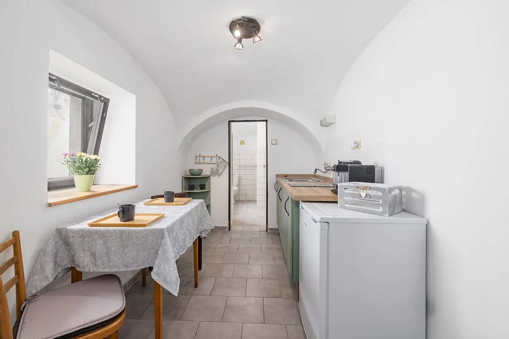 Dominantou městského domu, který zvenku působí spíš nenápadně, jsou vstupní vrata, které přímo vybízejí k tomu, aby byly otevřené…Nabídnou vstup pro návštěvu turistů či zákazníků obchůdku nebo kavárny? Potřebujete pro svou práci ateliér, dílnu, skladovací prostory? Dům nabízí skvělou příležitost pro sloučení bydlení s podnikáním.