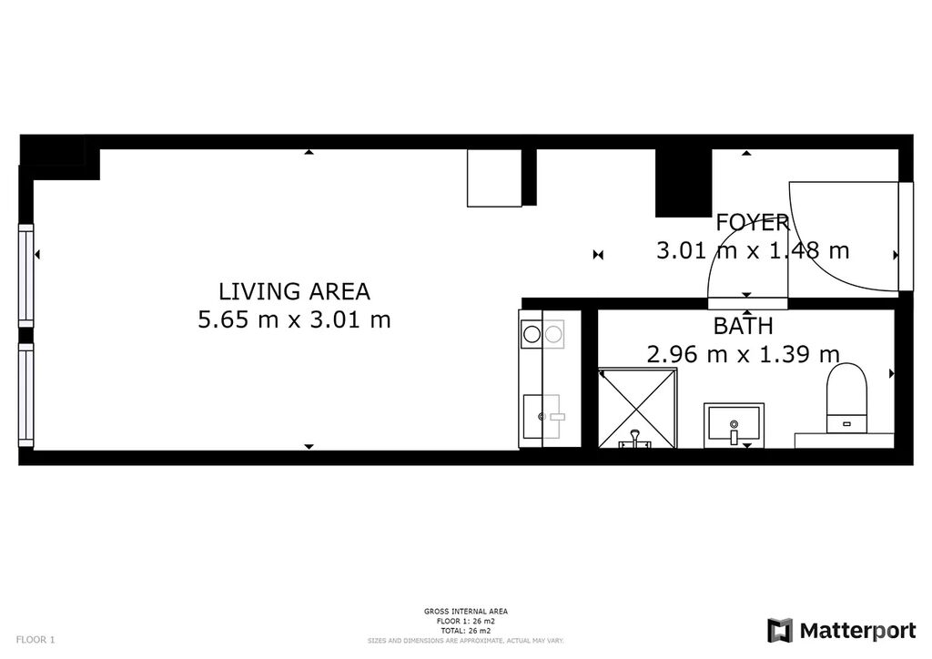 Chcete zde bydlet? Můžete! A to v bytě 1+kk o výměře 26 m2 ve 1. NP. V bytě se nachází koupelna s toaletou a obývací pokoj spojený s malým kuchyňským koutem. S úložným prostorem si hlavu dělat nemusíte, k bytu náleží také sklepní kóje.