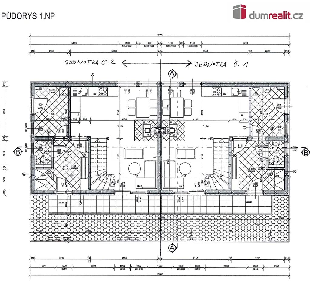 V přízemí se nachází prostorný obývací pokoj s kuchyňským koutem a jídelnou, vstupní chodba s vestavěnou skříní a samostatná toaleta.