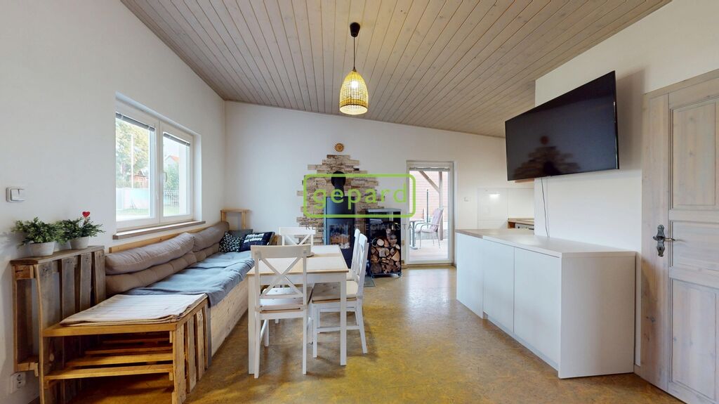 Na zahradě je k dispozici garáž, která nabízí pohodlné parkování i prostor pro uložení potřebného vybavení, dále suchá toaleta s elektřinou pro pohodlné používání při pohybu kolem domu a nádrž na dešťovou vodu o objemu 1,2 m³ umístěná pod dešťovým svodem. Součástí prodeje domu je i veškeré kompletní vybavení – chytrá televize, pračka, lednice a vybavení kuchyně, takže se můžete ihned nastěhovat bez dalších investic.