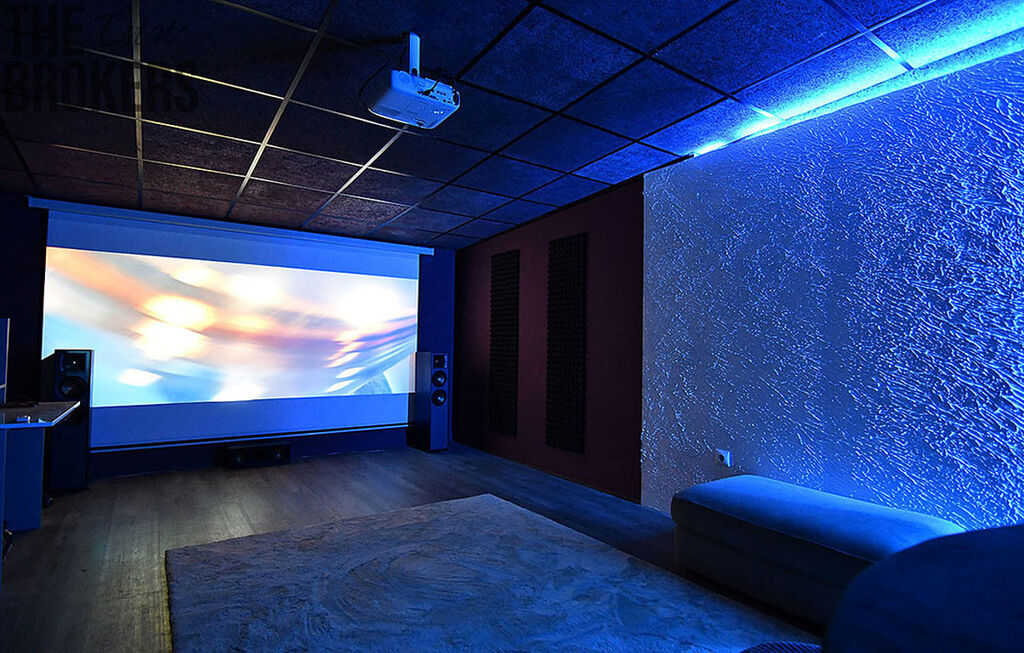Špičkové soukromé kino se zvukovým systémem Klipsch 5.1 a barem s tanečním parketem.