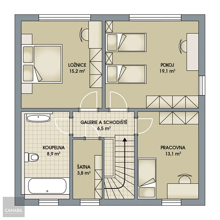 Přízemí tvoří otevřený prostor obývacího pokoje s kuchyní a jídelnou s přímým vstupem na zahradu. Disponuje dalším pokojem, koupelnou se sprchovým koutem a toaletou, hobby místností a také komorou. Ve druhém podlaží se nachází hlavní ložnice, pokoj a pracovna. Nesmí chybět ani prostorná šatna, koupelna s vanou a toaletou. Součástí příslušenství je parkovací stání ze zámkové dlažby pro osobní automobily, stejně tak přístupový chodník a terasa.