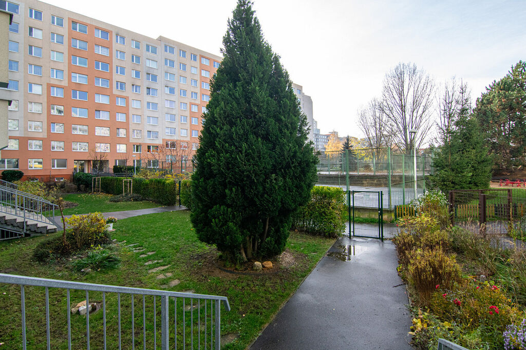 Byt je umístěn v revitalizovaném panelovém domě, který je udržovaný a ve velmi dobrém stavu. K bytu náleží spoluvlastnický podíl na oplocené předzahrádce u domu, kterou mohou obyvatelé využívat k odpočinku nebo drobnému zahradničení.
