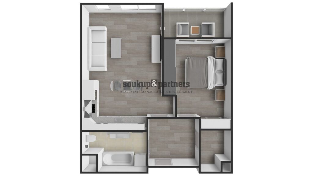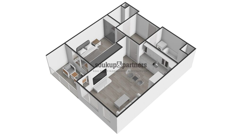 K bytu přísluší garážové stání č. G115 v 1. podzemním podlaží, které není zahrnuto v ceně.