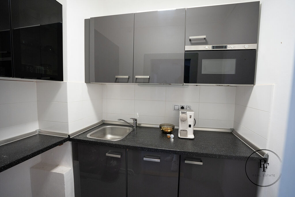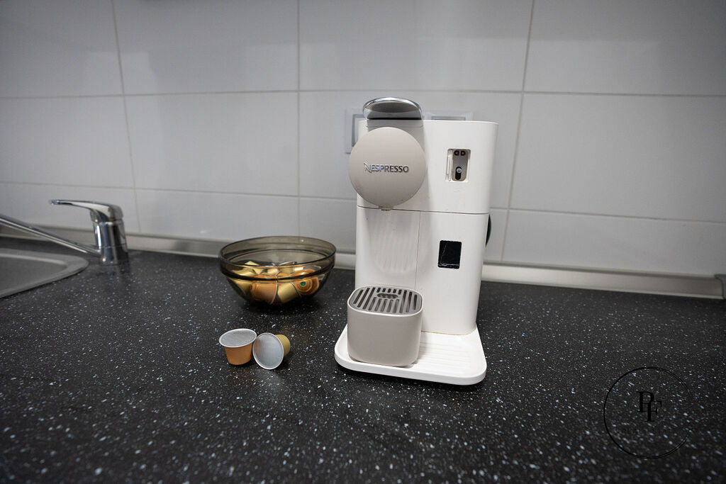 kuchyňku – vybavenou myčkou, úložnými skříňkami, mikrovlnkou a kávovarem