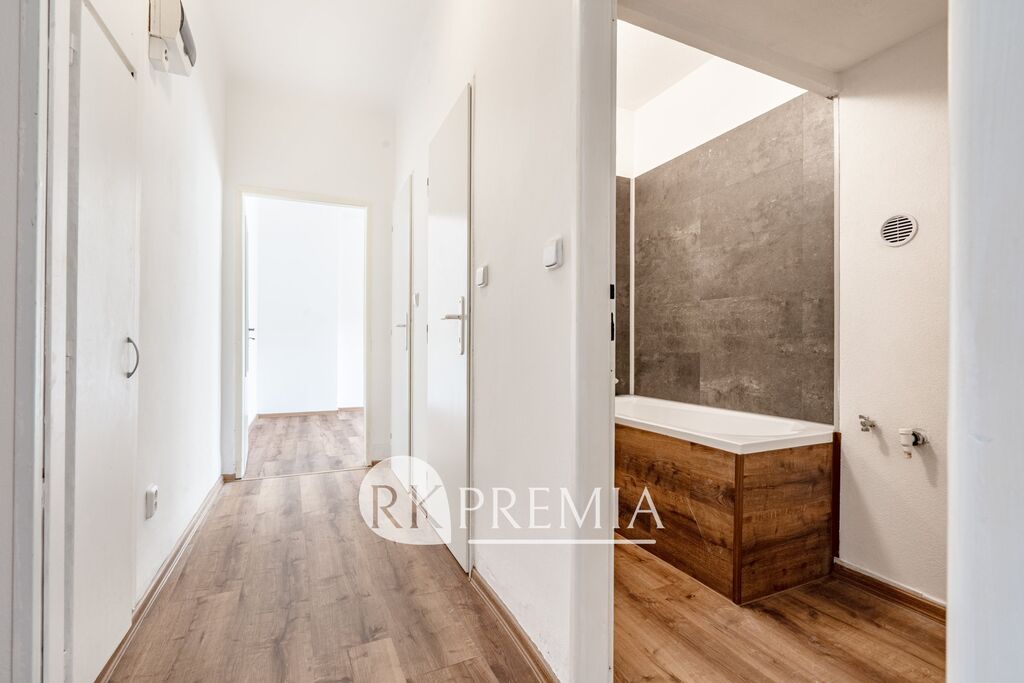 Byt je s dispozicí 2+1 a velikostí 52 m2. Je po celkové rekonstrukci, čerstvě vymalován, s novou koupelnou a připraven k okamžitému nastěhování. K užívání zůstává vybavení bytu: šatní skříň, TV komoda, konferenční stolek, sedačka, jídelní stůl a židle. K bytu náleží sklepní kóje.