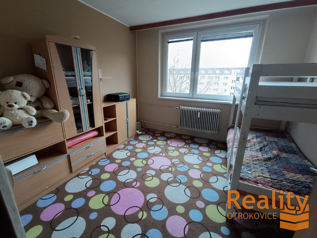 Na sídlišti Trávníky exkluzivně nabízíme do nájmu 3+1 s komorou, šatnou a lodžií v 4. NP v panelovém domě bez výtahu. Byt s výhledem do zeleně má výměře 71m2 má otevřenou kuchyni s jídelnou, neprůchozí pokoje, jeden s lodžií, šatnu v bytě, komoru s oknem. Ve společných prostorách kolárna. Bytové jádro je vybaveno vanou, umývadlem, WC je samostatné. V kuchyni kuchyňská linka, sporák, chladnička s mrazničkou, další samostatné skříňky a jídelní stůl a židle. 2 pokoje jsou zařízené, jeden s patrovou postelí a nízkým nábytkem, ve druhém je postel a šatní skříně, obývací pokoj nezařízený.