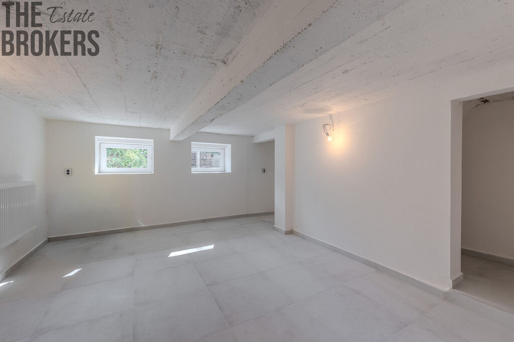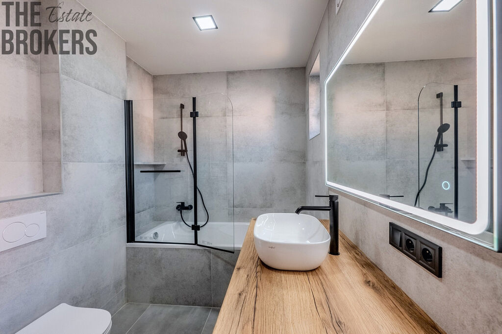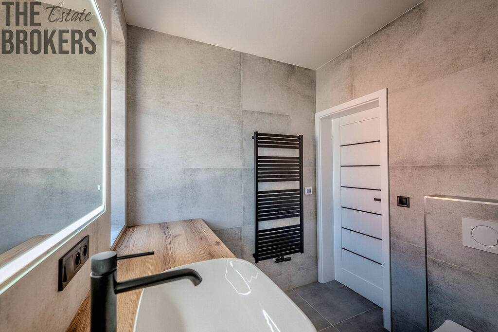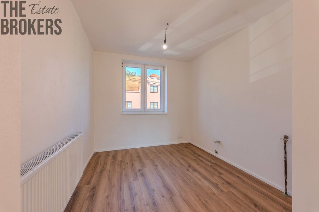 Koupelna je zcela nová – moderní obklady, sanita i rozvody. Z hlavní ložnice je přímý vstup na zrekonstruovaný balkon (8 m²), který má novou hydroizolaci, dlažbu i zábradlí. Ve sklepě je jedna obyvatelná místnost s okny a technická místnost.