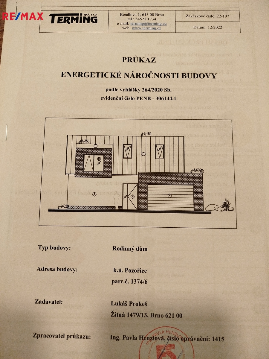 Na pozemek je již vydáno platné stavební povolení na výstavbu moderního rodinného domu o dispozici 6+kk, s garáží a celkovou užitnou plochou cca 277 m², z toho obytná část přibližně 180 m². Cena zahrnuje výstavbu hrubé stavby, která bude realizována na základě konkrétní dohody. Součástí hrubé stavby jsou základy, hydroizolace, vodorovné a svislé konstrukce, zastřešení včetně klempířských a zámečnických prvků. Dokončení domu je možné podle přiložených vizualizací.