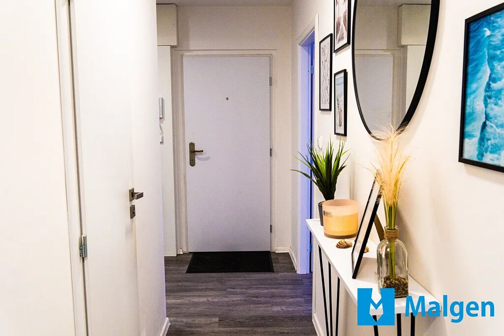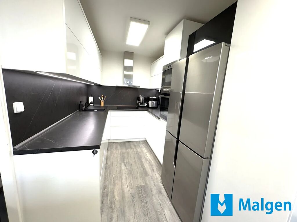 Dispozice bytu zahrnuje prostorný obývací pokoj propojený s moderním kuchyňským koutem včetně spotřebičů, ložnici, další pokoj (aktuálně využívaný jako pracovna), koupelnu s vanou a samostatnou toaletu. Součástí je také zasklená lodžie (7 m²) s klidným výhledem do vnitrobloku se zelení a dětským hřištěm. V bytě je dostatek úložných prostor, včetně vestavěných skříní, a komfort zvyšuje i elektrické podlahové vytápění v koupelně a na toaletě. Dle dohody je možné ponechat i zánovní vybavení a nábytek.