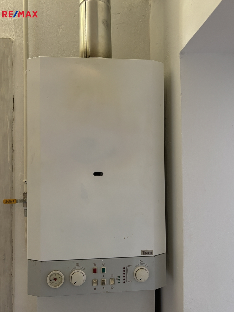 Vytápění bytu samostatným novým plynovým kotlem s radiátory, Zánovní koupelna a kuchyně včetně rozvodů vody a elektřiny.