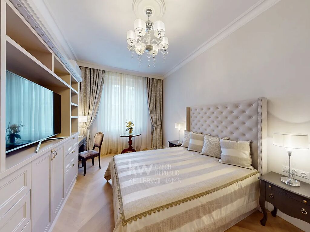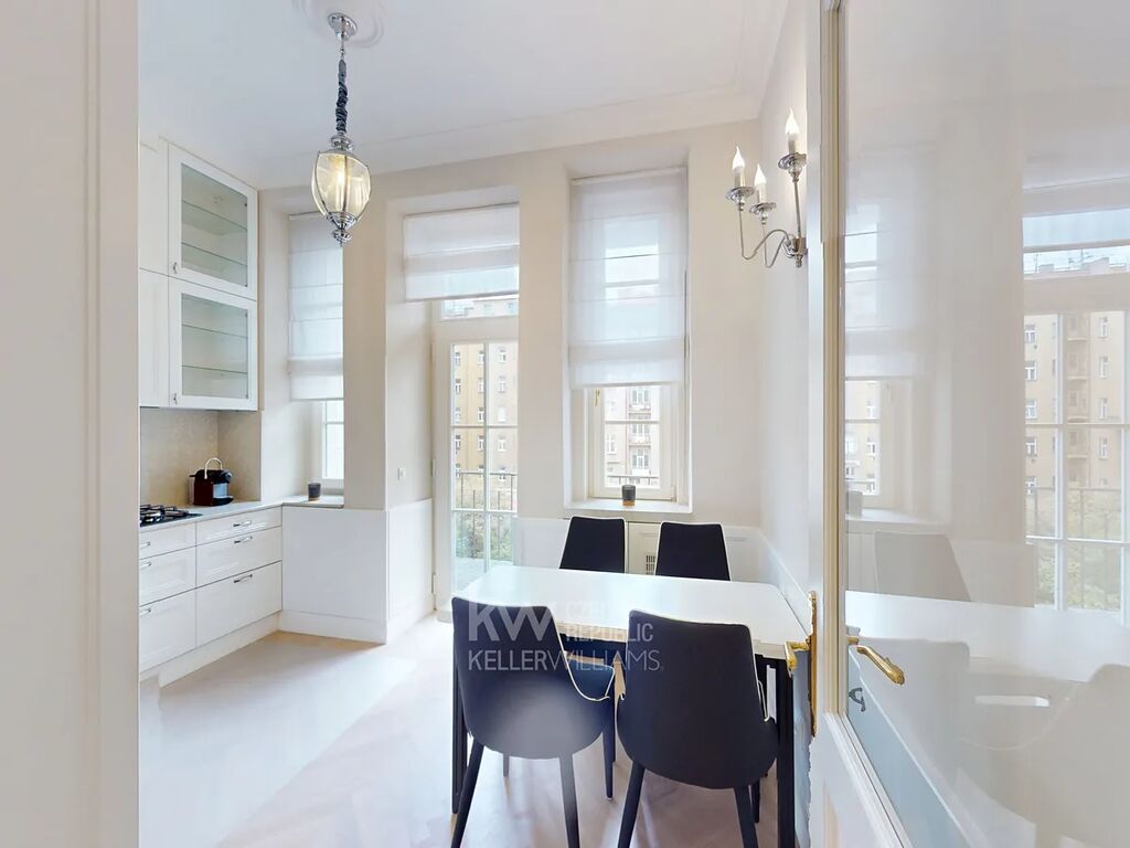 Výsledný luxusní interiér prošel předtím kompletní rekonstrukcí pod vedením interiérové designérky, která věnovala maximální pozornost detailům a vytvořila prostor plný elegance, komfortu a originality – inspirovaný stylem bydlení v New Yorku. Vysoké stropy dodávají bytu vzdušnost a jedinečnou atmosféru.