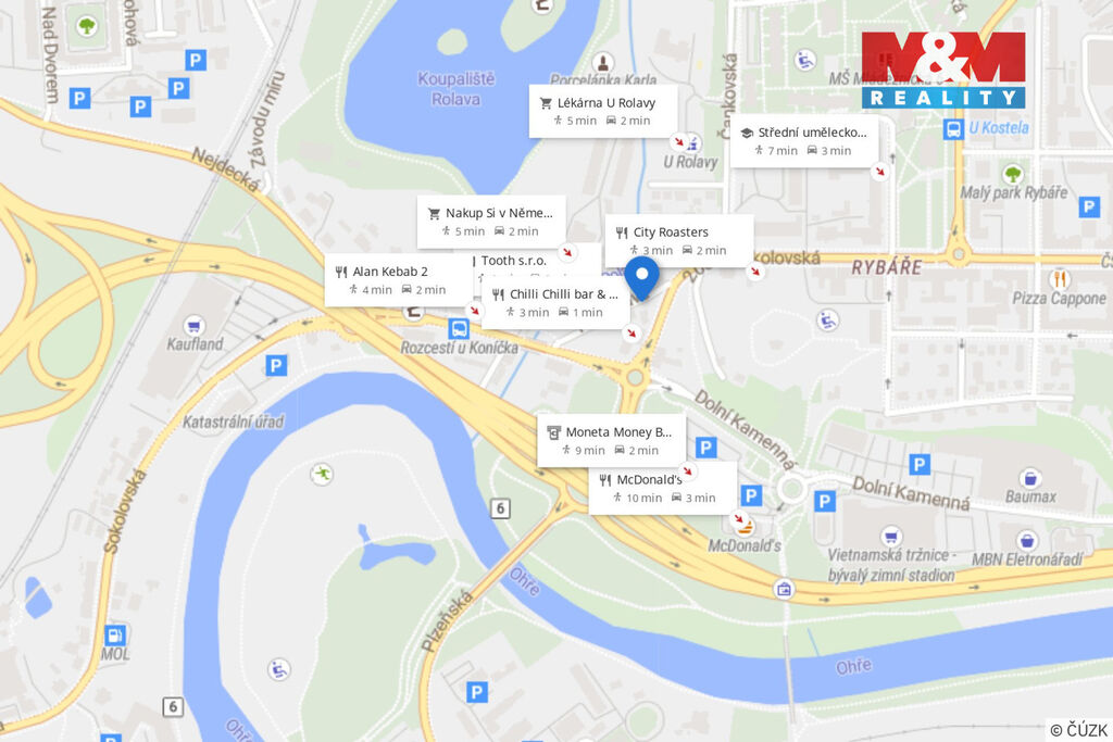 Rybáře jsou skvělou lokalitou: v docházkové vzdálenosti najdete supermarket, zastávky MHD, poštu, restaurace i pěší trasy podél řeky. Ideální místo pro ty, kteří chtějí mít centrum na dosah, ale zároveň ocení klidnější část města.