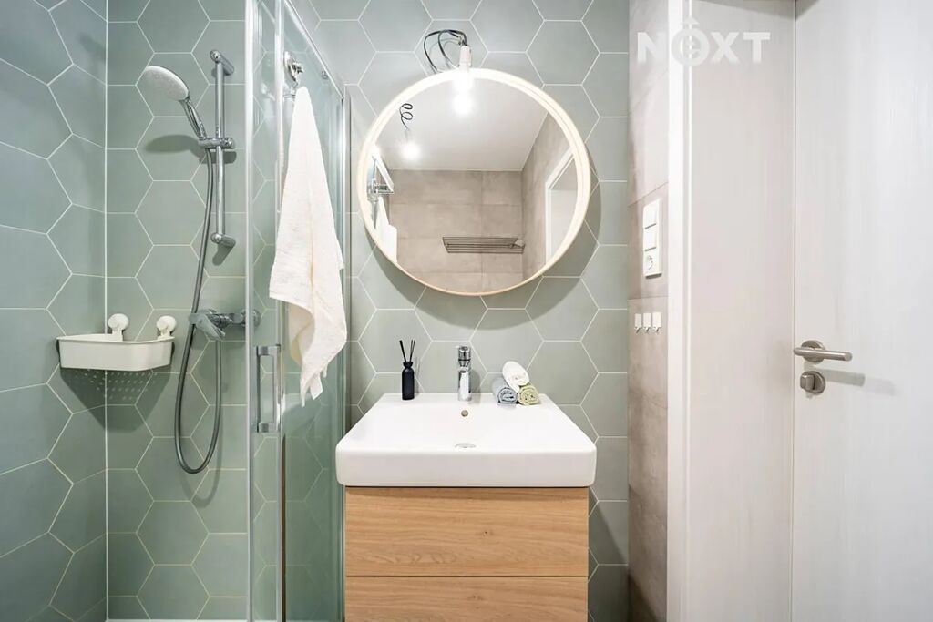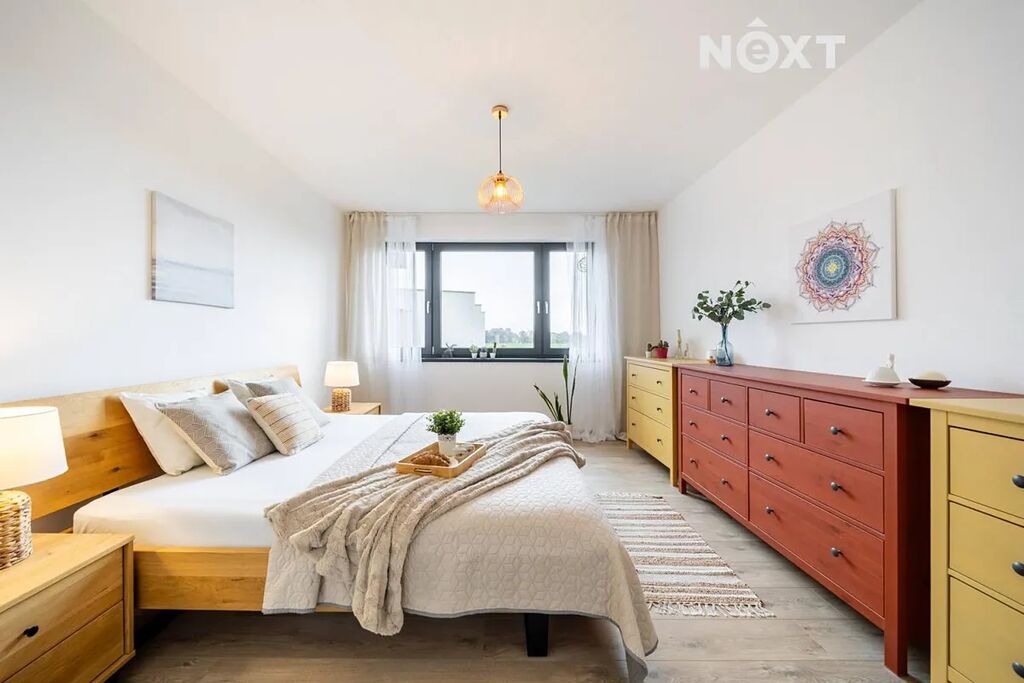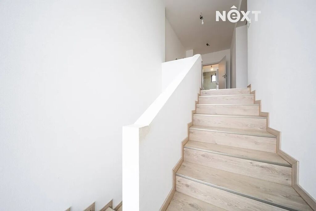 Elegantní prosklené schodiště vede do prvního patra, kde se nachází soukromá část domu. Hlavní ložnice o 16,09 m² působí vzdušně a nabízí klid s příjemným výhledem. Druhý pokoj o 13,95 m² je ideální jako dětský pokoj nebo pracovna. Třetí pokoj o velikosti 12,6 m² může sloužit jako druhý dětský pokoj, hobby místnost nebo pracovna pro dva. Nechybí ani čtvrtá místnost o 9,89 m², vhodná jako šatna, menší pracovna nebo pokoj pro hosty. Koupelna v patře má 7,59 m², je vybavena vanou i sprchovým koutem a díky oknu působí příjemně, svěže a umožňuje přirozené větrání.
