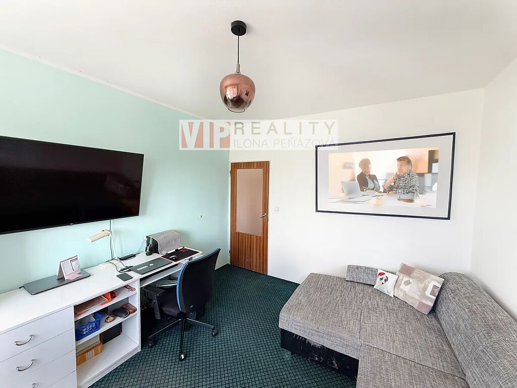 Hlavním benefitem je prostorná komora přímo v bytě – perfektní místo na domácí dílničku, šatnu nebo prostě velký úložný prostor, který se v bytech často hledá jen těžko.