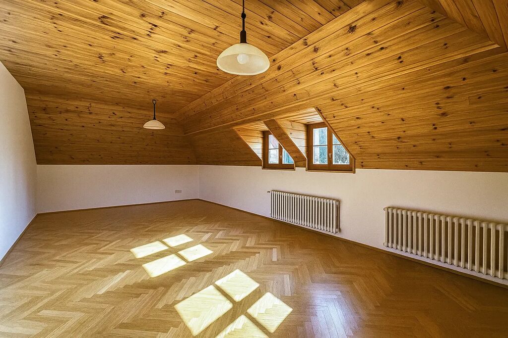 Dům nabízí celkovou užitnou plochu 316 m² a je situován na pozemku o rozloze 522 m². Vstupní podlaží tvoří prostorný obývací pokoj s přímým vstupem na terasu a udržovanou zahradu, samostatná kuchyně a velkorysá koupelna se sprchovým koutem, dvěma umyvadly a oddělenou toaletou. V prvním patře se nacházejí tři ložnice, z nichž dvě disponují vlastním balkonem. Komfort zajišťují dvě koupelny – jedna se samostatnou toaletou a druhá s whirlpool vanou a dvěma umyvadly. V podkroví jsou další dvě ložnice a koupelna s vanou. Suterén domu nabízí plnohodnotné zázemí v podobě garáže pro dvě vozidla, technické místnosti, skladu a multifunkčního pokoje, který lze využít například jako fitness nebo hernu, s vlastní koupelnou a WC. Další dvě parkovací místa jsou k dispozici na pozemku před domem.