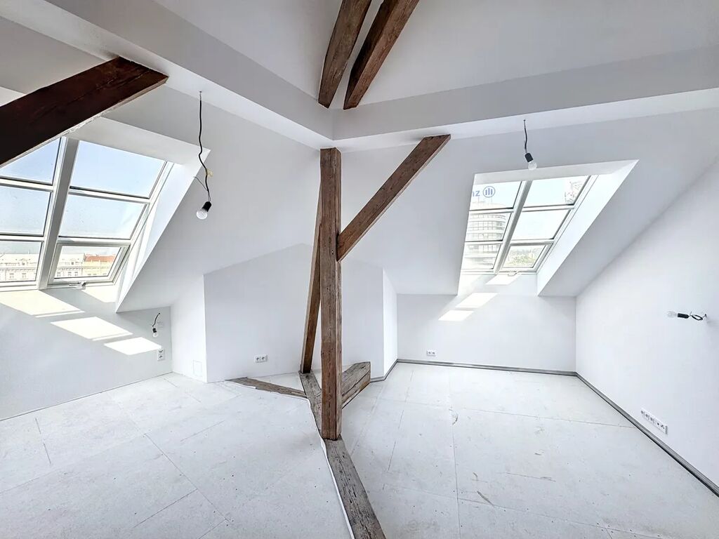 Nabízíme k prodeji výjimečný mezonetový byt o dispozici 4+KK, situovaný v 5. a 6. nadzemním podlaží historického domu v srdci oblíbené pražské čtvrti Karlín. Byt je orientovaný na jih do klidného vnitrobloku a pyšní se dechberoucími výhledy – z hlavní ložnice na Pražský hrad, z terasy na Žižkov a Karlín.