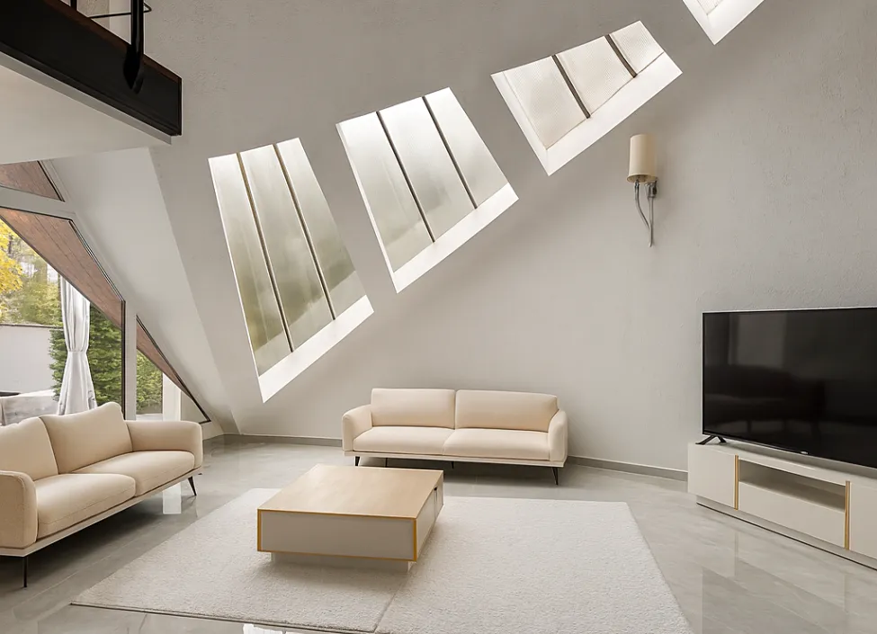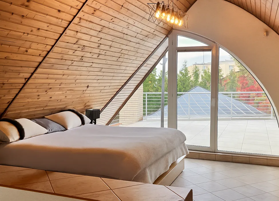 Vila disponuje katedrálovým stropem nad dvoukřídlým obývacím prostorem a nabízí přímý přístup na rozsáhlou 70 m2 terasu. Dominantní moderní křišťálové lustry jsou umístěny ve všech prostorách vily, včetně koupelen. Vila je plně zařízena a veškeré vybavení, spotřebiče a vybavení koupelen a obou moderních kuchyní pochází od značek Villeroy Boch, Optimal, Dolomite, HansGrohe, Vigor, Siemens, Privileg, Baumatic.