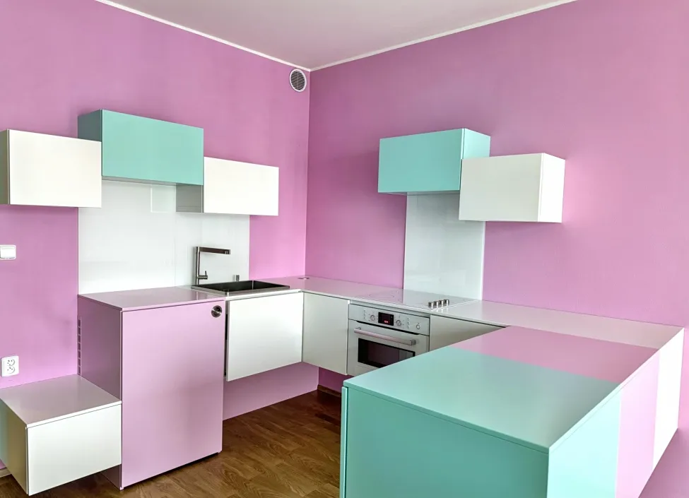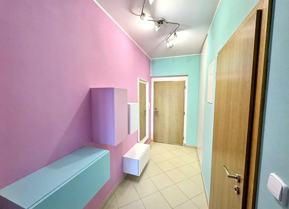 Interiér bytu je zařízen designovým nábytkem na míru, který poskytuje dostatek úložného prostoru díky chytrému řešení skříněk a vestavěných skříní. Kuchyňská linka je vybavena vestavěnou lednicí s mrazákem, čtyřplotýnkovou varnou deskou, kompaktní troubou s mikrovlnnou funkcí – vše značky BOSCH. Stylový dřez značky BLANCO harmonicky doplňuje celý prostor. Kuchyně volně přechází do obytné části s postelí a psacím stolem s úložným prostorem, odkud je přímý vstup na lodžii s výhledem do klidného vnitrobloku.