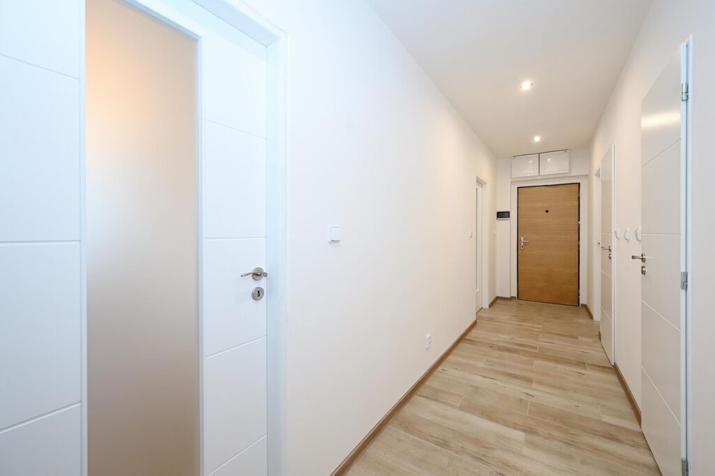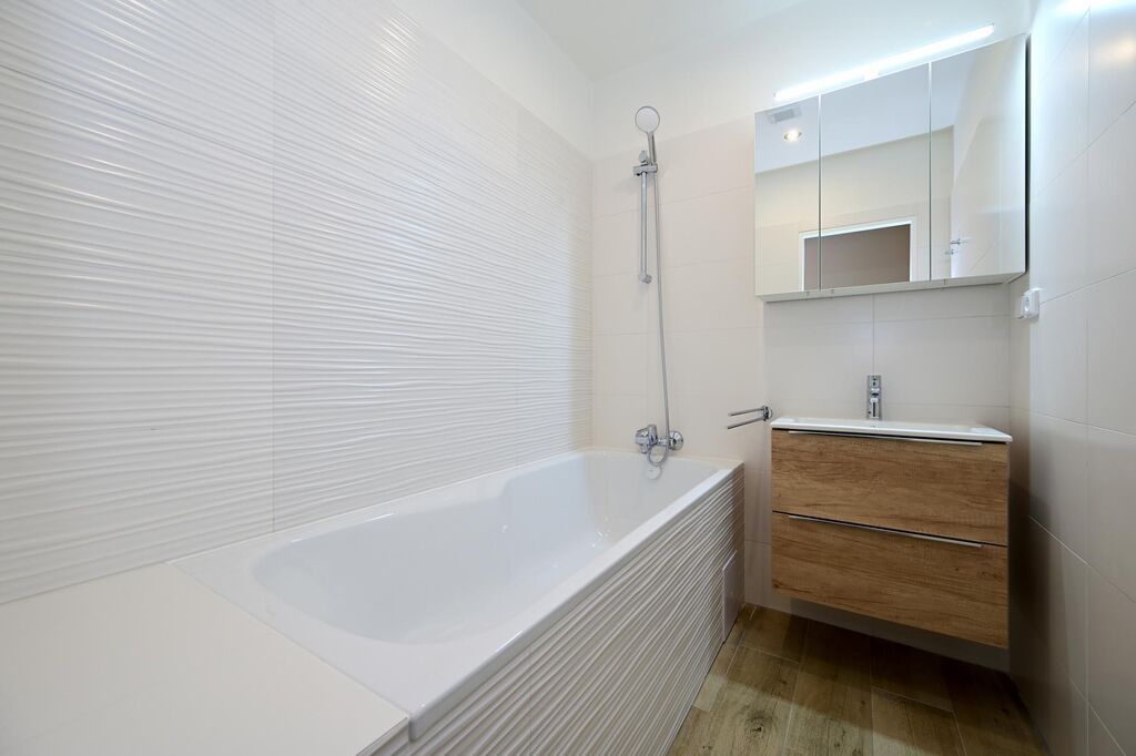 Zcela nová rekonstrukce bytu 5. NP v klidné ulici kousek od parku Petřín. Okna východním směrem, budou opatřena vnějšími elektrickými roletami.