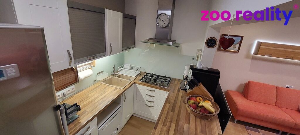 Vkusná kuchyň se zabudovanými spotřebiči je inteligentně propojena s obývacím pokojem. Koupelna se sprchovým koutem má vlastní okno, WC je samostatné. Prostorný obývací pokoj a ložnice.