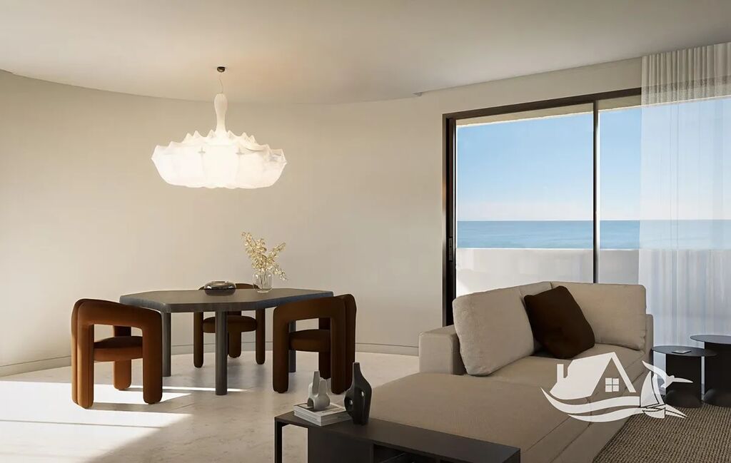 Dominantou bytu je terasa o velikosti 78 m², která otevírá dechberoucí výhled na moře a ikonický Peñón de Ifach. Slunce zde dopadá po celý den a vytváří prostředí ideální pro klidné snídaně, večerní posezení i chvíle, kdy si jen užíváte panoramata Costa Blanky. Interiér je navržen s důrazem na čistotu linií a funkčnost. Obývací pokoj plynule navazuje na moderní kuchyň, dva samostatné pokoje nabízí soukromí a dvě elegantní koupelny doplňují pocit nadstandardního bydlení.