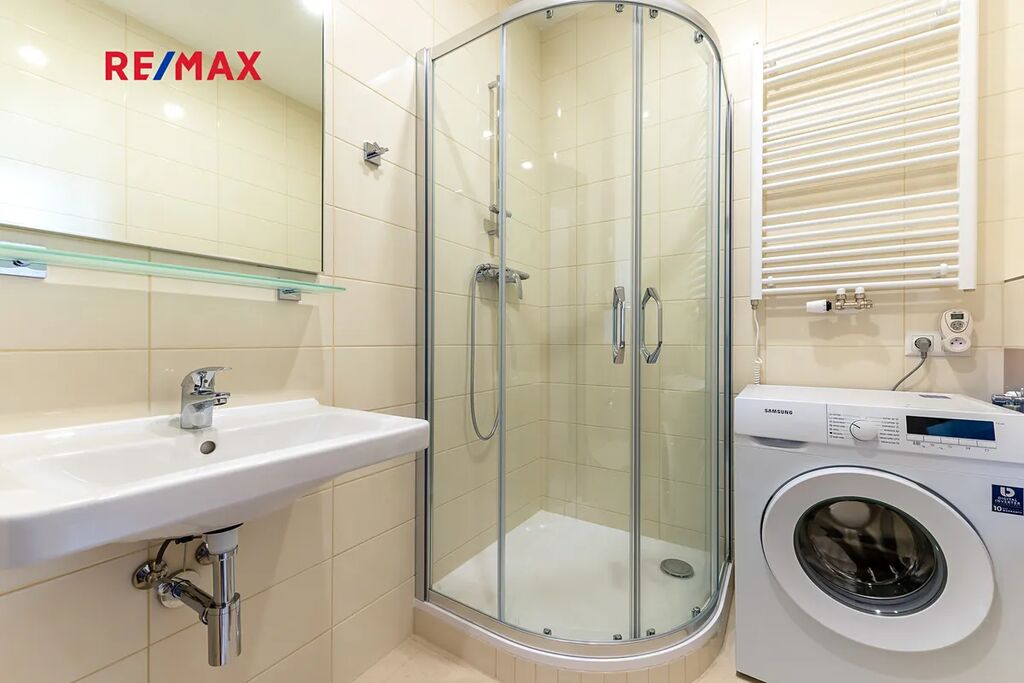 Interiér tvoří kvalitní laminátové podlahy, moderní kuchyňská linka a koupelna se sprchovým koutem. Dům po rekonstrukci působí elegantně a čistě, s výtahem a bezpečným vstupem. K bytu pátří sklep v 1PP.