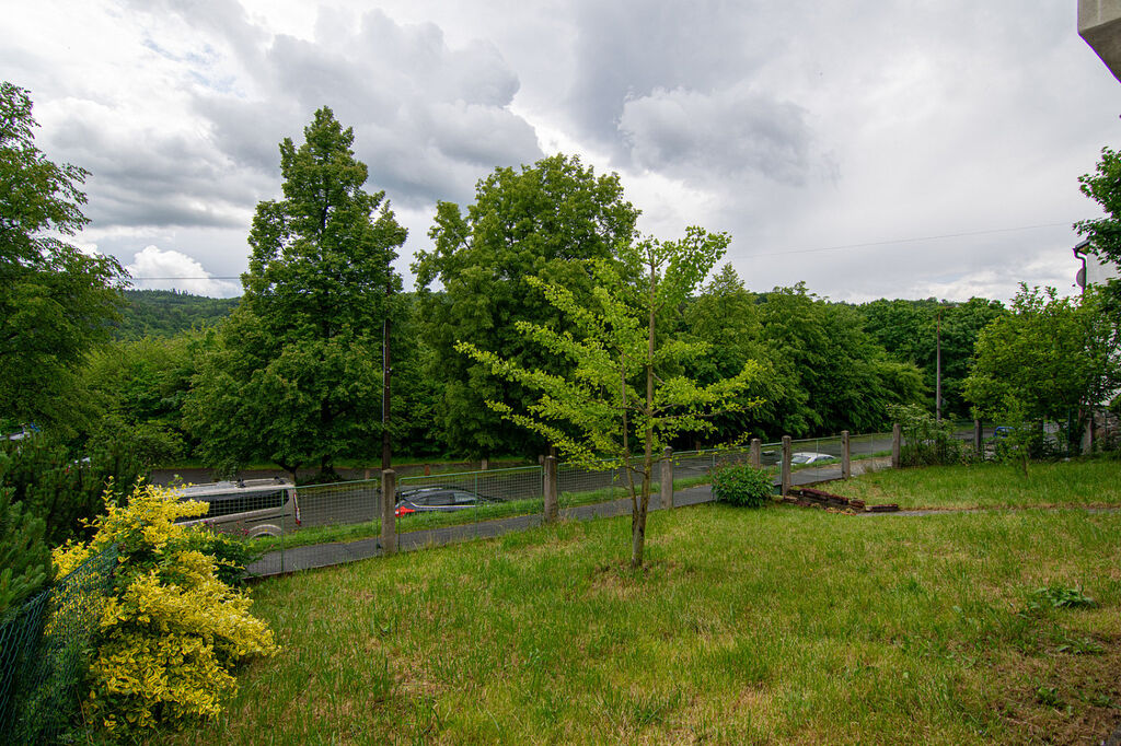 Pozemek má celkovou výměru 727 m². Je svažitý s krásnými výhledy do okolí. Dům je částečně zapuštěn do terénu pozemku.