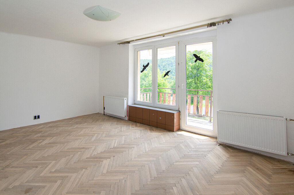 Na podlaze jsou položeny parkety. Plastová okna jsou osazena venkovními roletami.