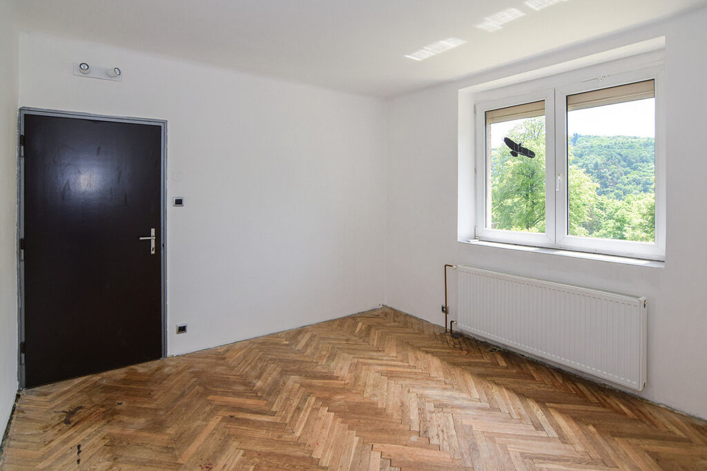 V patře je bytová jednotka o dispozici 3+1 s balkonem. Výměra je přibližně 64 m².