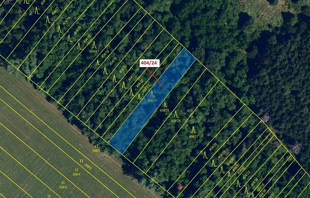 Lesní pozemek o výměře 741 m2, parcelní číslo 404/24, podíl 1/1, katastrální území Hrubšice, obec Ivančice, obec s rozšířenou působností Ivančice, okres Brno-venkov, Jihomoravský kraj.