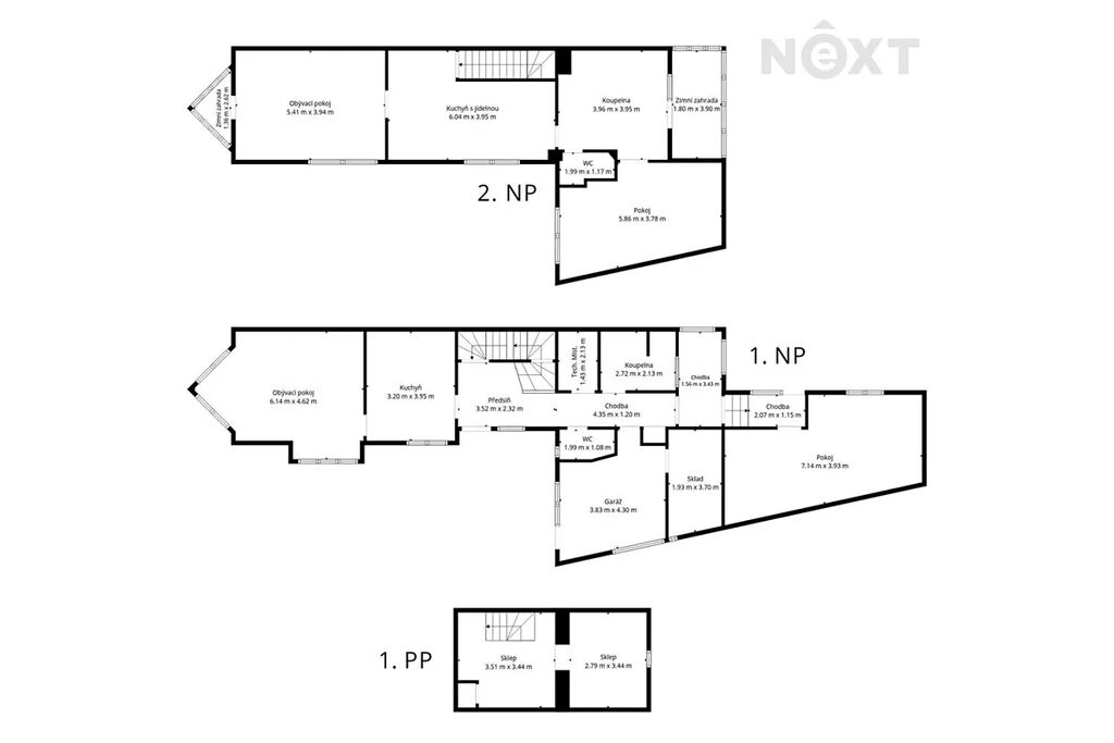 Na každém patře jsou k dispozici koupelna a toaleta, což zajišťuje maximální komfort pro všechny obyvatele domu. Dům má dvě nadzemní podlaží a jedno podzemní podlaží, které se využívá jako sklep.