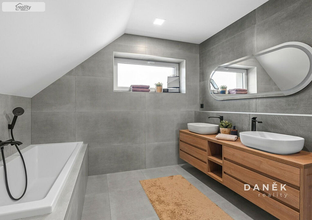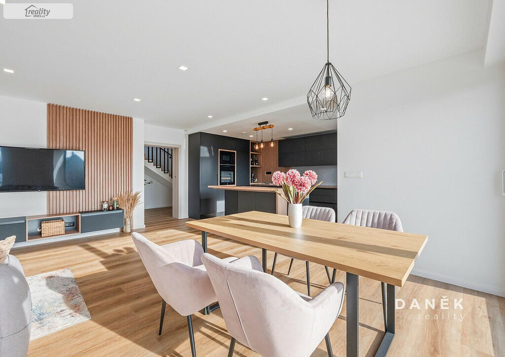 Tento elegantní dům o dispozici 5+kk a užitné ploše 146 m² (celková plocha včetně garáže 171 m²) zaujme na první pohled promyšlenou architekturou, kvalitním zpracováním a útulnou atmosférou. Byl kolaudován v roce 2023 a nachází se na slunném pozemku o výměře 907 m² v klidné části obce.