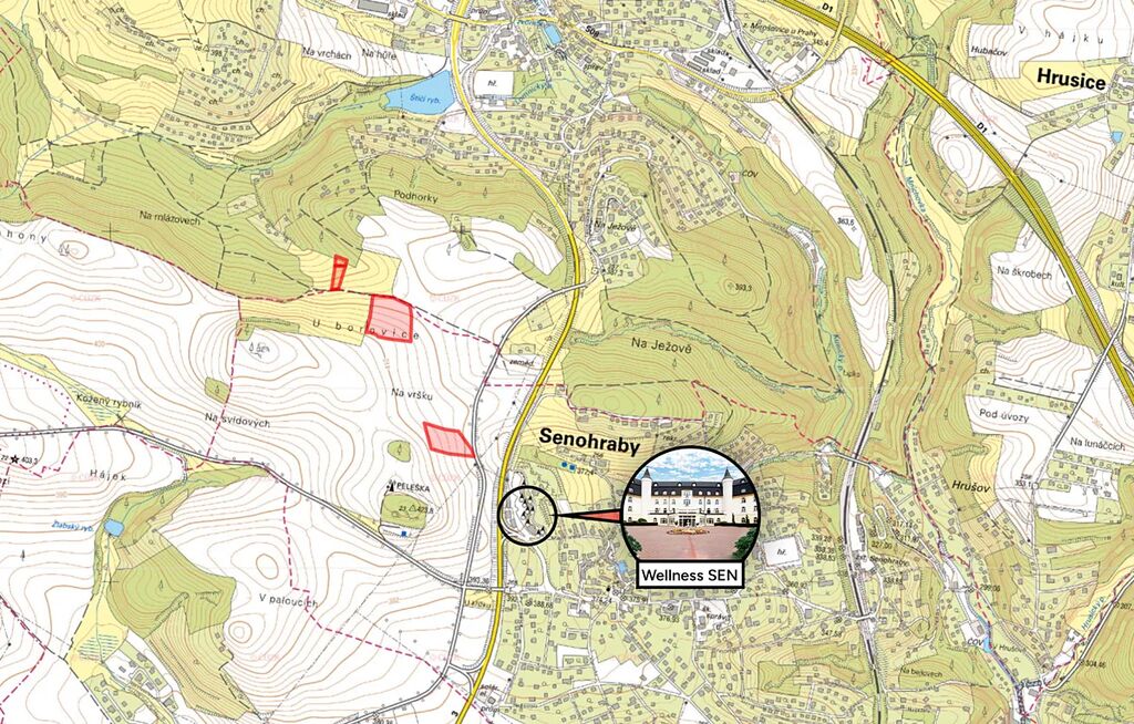 V zastoupení přímého majitele nabízím k prodeji soubor pozemků. Parcely leží mezi obcemi Mirošovice a Senohraby v blízkosti věhlasného wellness areálu Sen.