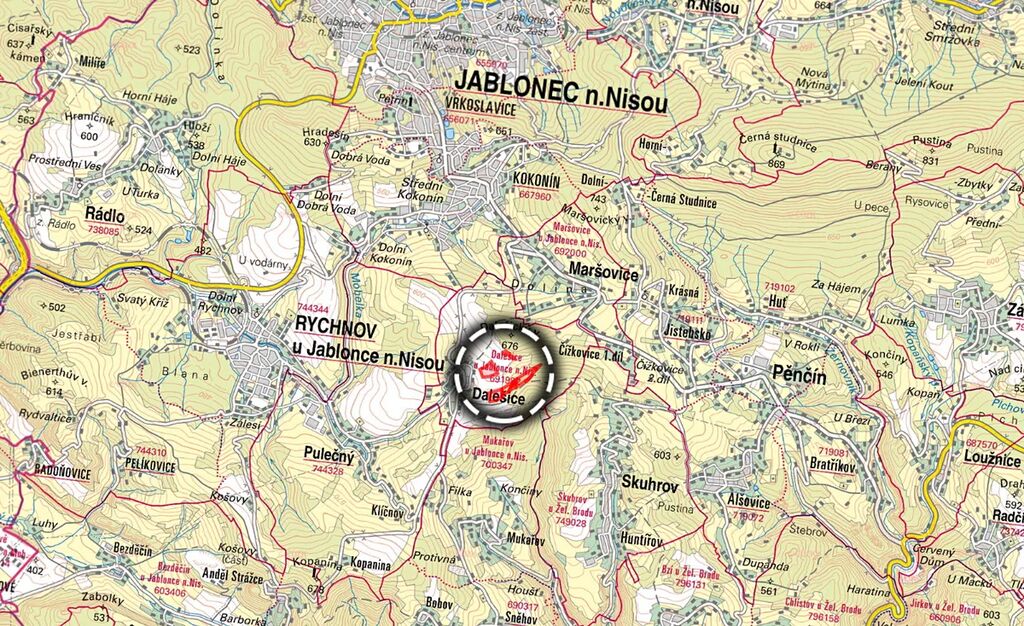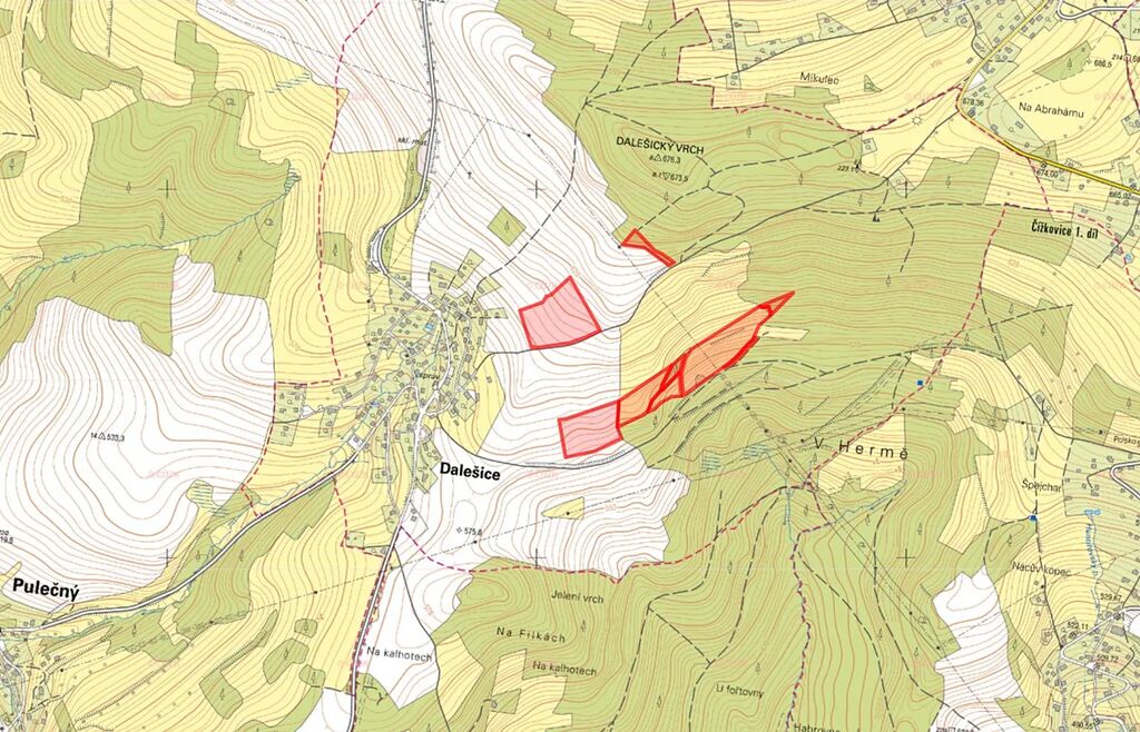 V západní části obce Dalešice, přibližně 4 km od Jablonce nad Nisou, nabízím k prodeji soubor zemědělských a lesních pozemků ve výlučném vlastnictví. Pozemky tvoří rozsáhlé zemědělské území a jsou zpřístupněny. Jsou vedeny na listech vlastnictví č. 411, 366 a 410 v katastrálním území Dalešice u Jablonce nad Nisou.