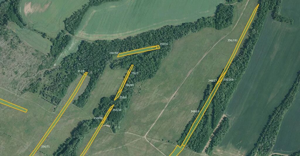 Předmětem prodeje je vlastnictví na parcelách 348/18, 348/27, 350/6, 350/7, 350/30, 350/38, 350/39, 353/8, 356/64, 356/71, 356/89, 356/92, 356/100, 356/133, 356/161, 356/172, 356/191, 356/202, 356/269, 376/24, 378/1, 383/45, 404/21, 404/33 a 413/26, zapsaných na LV č. 426, KÚ Hrubšice.