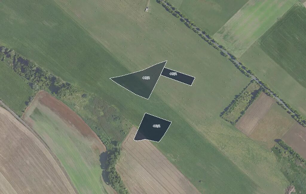 Celková výměra pozemků činí 82 106 m², z toho je k prodeji 24 776 m², přičemž 23 680 m² tvoří orná půda a 1 096 m² trvalý travní porost.