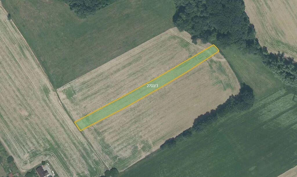 parcela č. 2703/3 o celkové výměře 4 493 m², z toho k prodeji je výměra odpovídající ideálním 2 246 m²