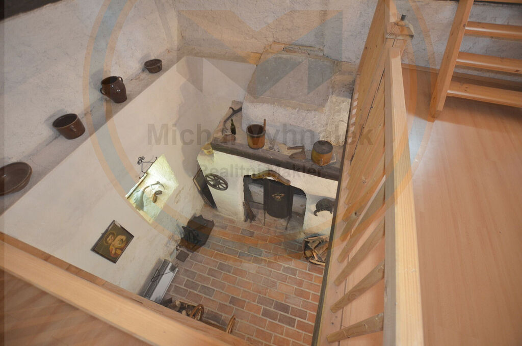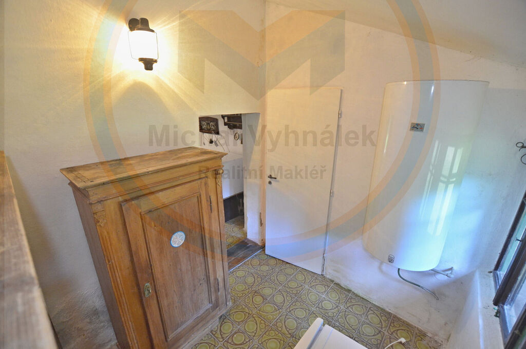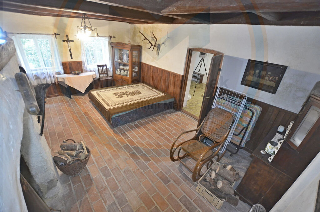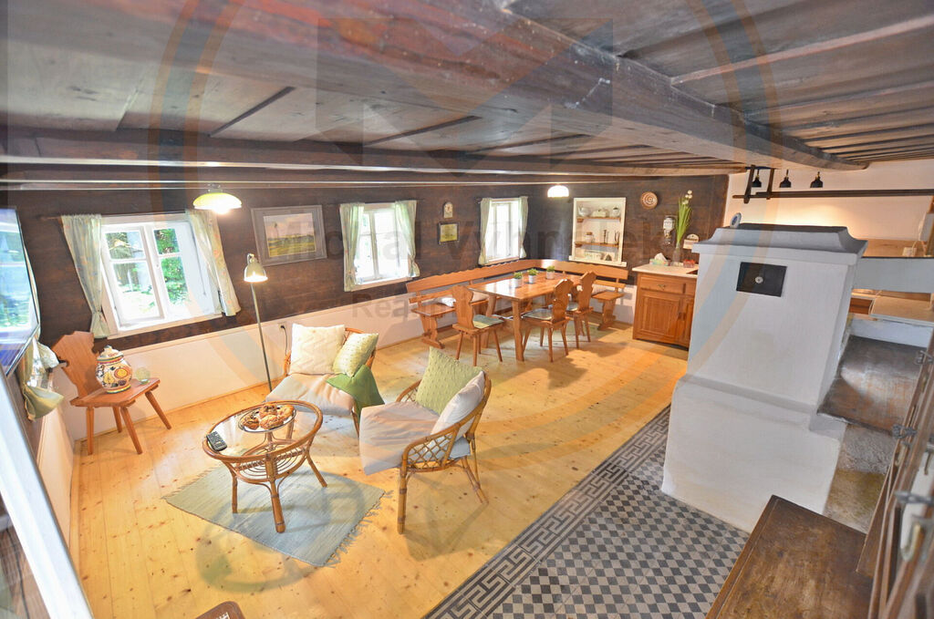 Přízemí: spojuje chodba se zrekonstruovaným obývacím pokojem (29 m²) s kuchyňským koutem a funkčními kamny. Dále samostatný pokoj (24 m²) s otevřeným stropem do patra, kde kamna umožňují vytápění i horního patra. Koupelna se sprchovým koutem, umyvadlem a WC. Z chodby vstup do sklepního prostoru s vodní pumpou.
