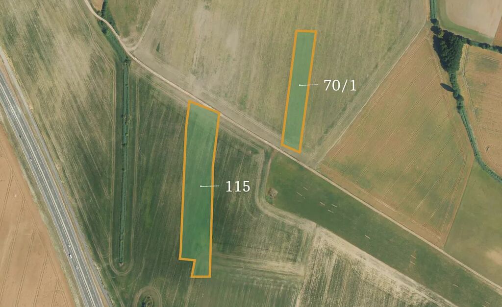 Jejich společná výměra je 79 606 m2 a k prodeji je z toho 39 803 m2, tedy vždy 1/2 podíl. Převážně se jedná o ornou půdu o výměře 39 142 m2, okrajově je několik menších pozemků vedeno jak ostatní plocha a vodní plocha.
