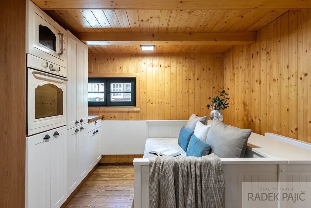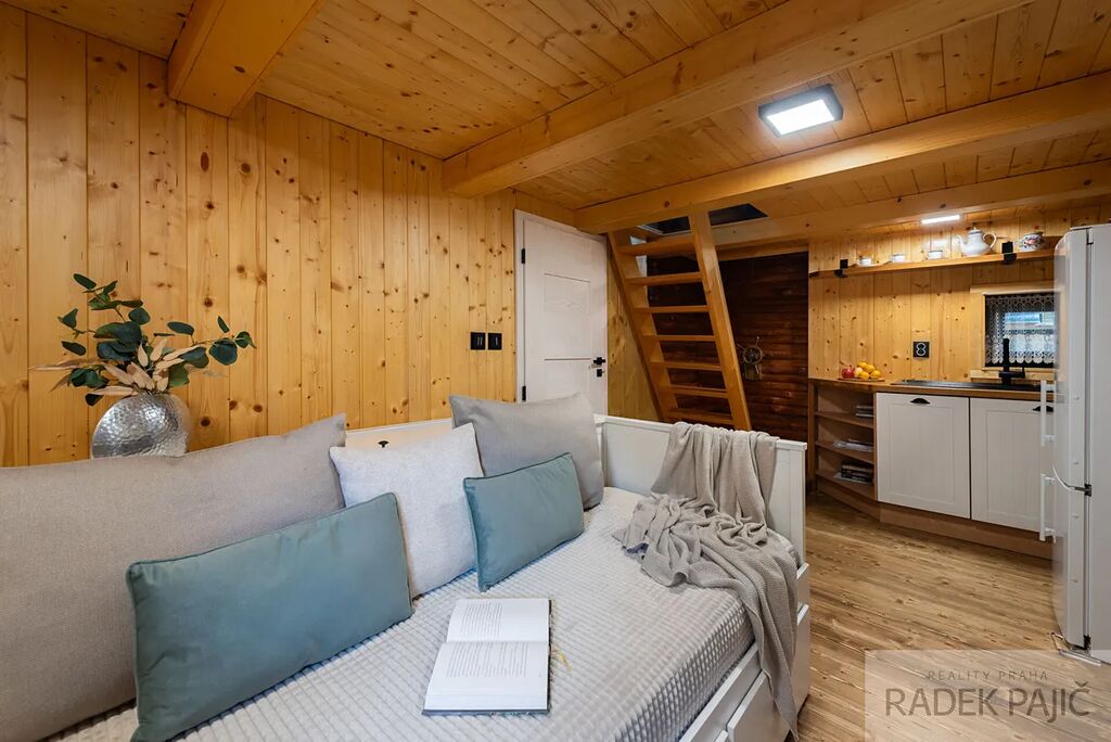 Prodej stylové chaty ve stylu srubu po kompletní rekonstrukci v trampské osadě Údolí Raků – klid, příroda a skvělá investice jen kousek od Prahy.