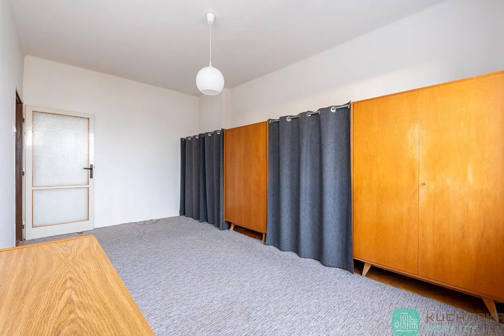Tento byt je ideální pro každého, kdo vyhledává klidné bydlení. Na své si přijdou i investoři, družstvo totiž povoluje podnájmy bytů. Byt je před rekonstrukcí, se zajímavým potenciálem. V současné době má dispozici 2+1, ale díky možnosti přestavby na 3KK lze vytvořit z kuchyně další pokoj nebo pracovnu podle potřeb nových majitelů. Byt se skládá ze vstupní chodby, obývacího pokoje, ložnice, kuchyně, koupelny a samostatného WC.