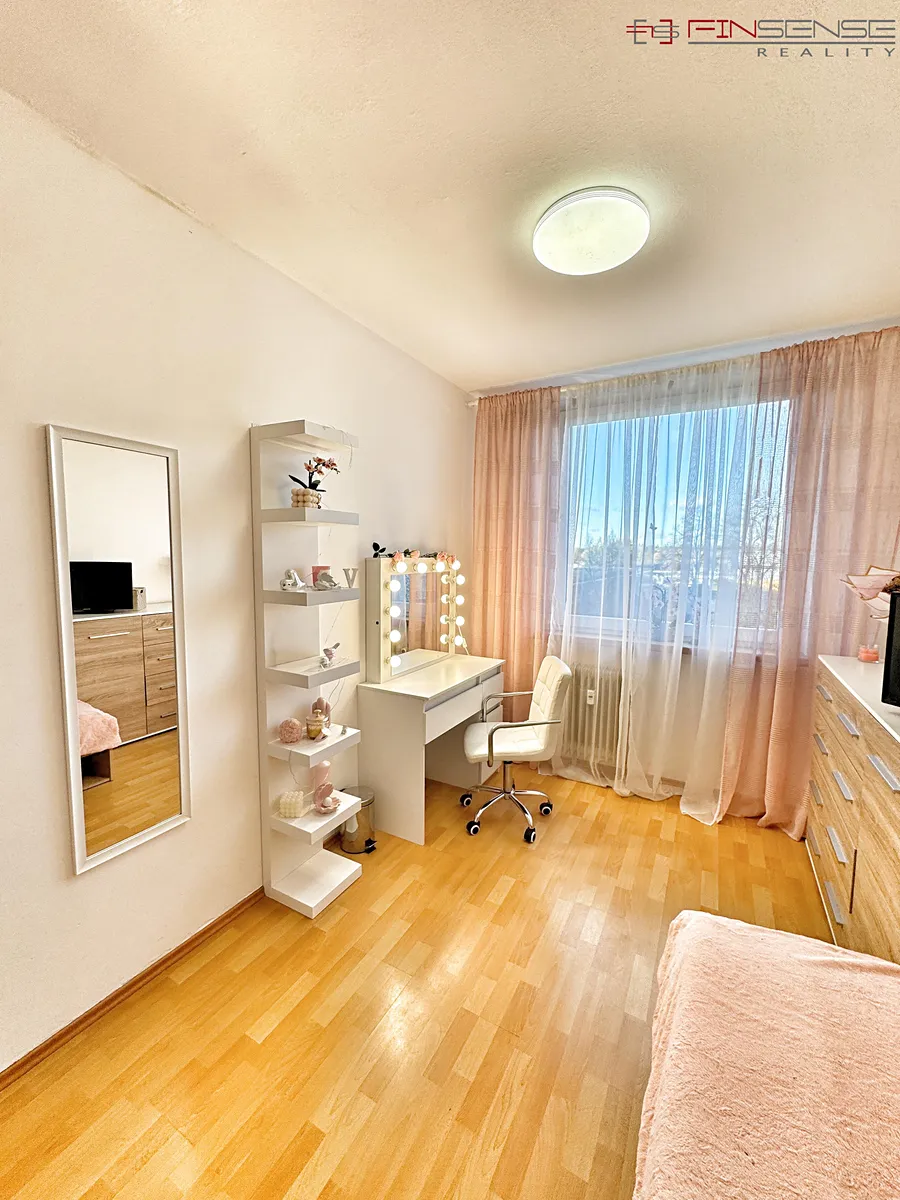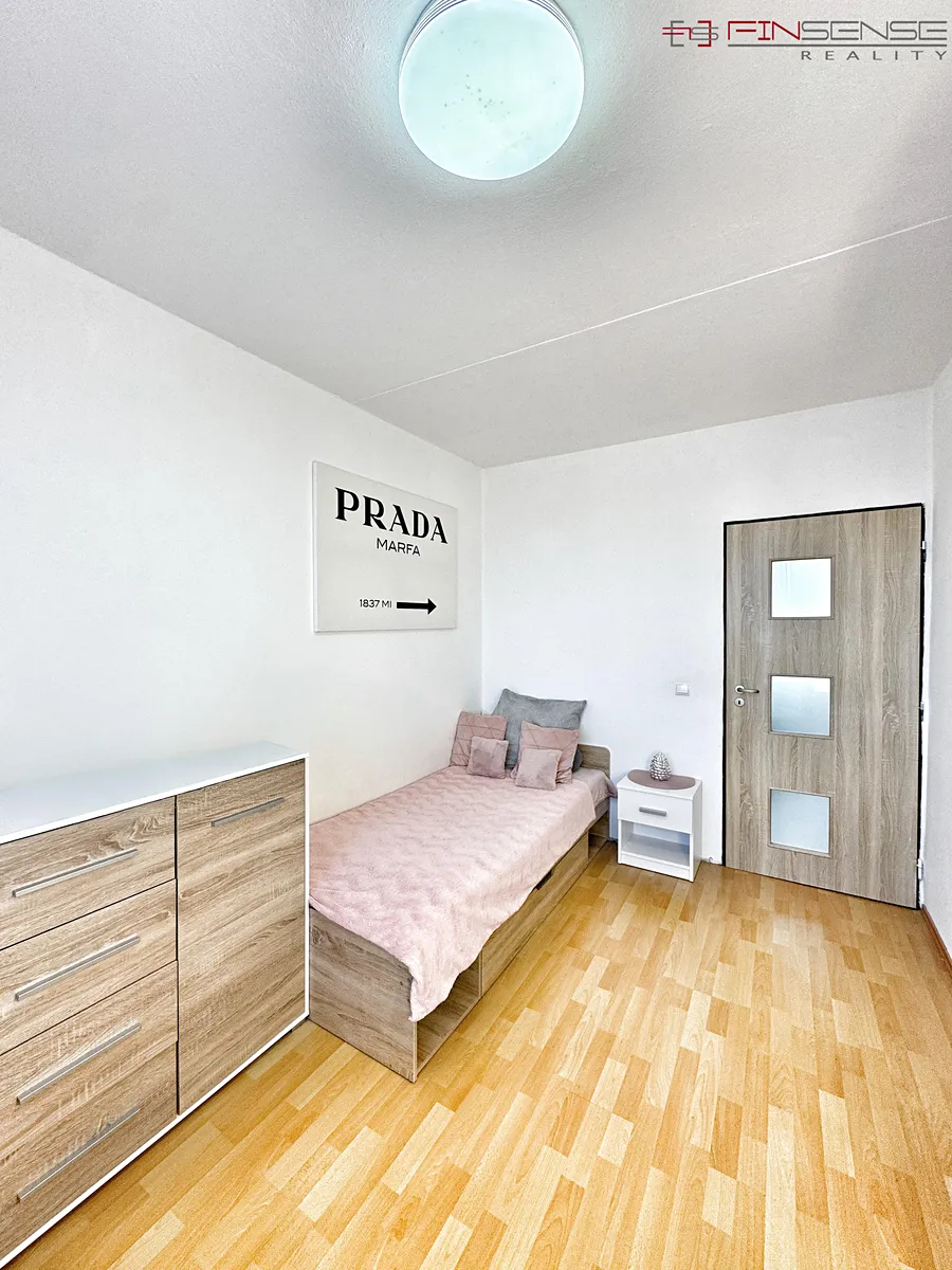 První samostatný pokoj má plochu 12,4 m² a druhý pokoj 9,2 m². Předsíň o rozloze 10,2 m² poskytuje dostatečný prostor pro ukládání. Koupelna má 3,1 m² a WC je samostatné s plochou 1,3 m². Sklep o velikosti 2,3 m² slouží k uložení věcí. Lodžie o ploše 6,4 m² je přístupná z obývacího pokoje.