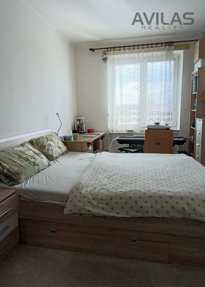 Z pokoje můžete vstoupit na nově rekonstruovaný balkon. Druhý pokoj je v současné době využíván jako ložnice, která je částečně zařízená - postel bez matrace a šatní skříň, ale díky své flexibilitě, může sloužit také jako pracovna. Kuchyň je vybavena kuchyňskou linkou, Lednicí, plynovým sporákem s troubou a digestoří.