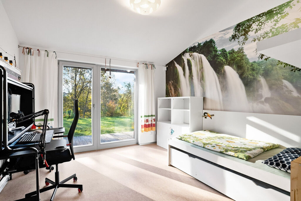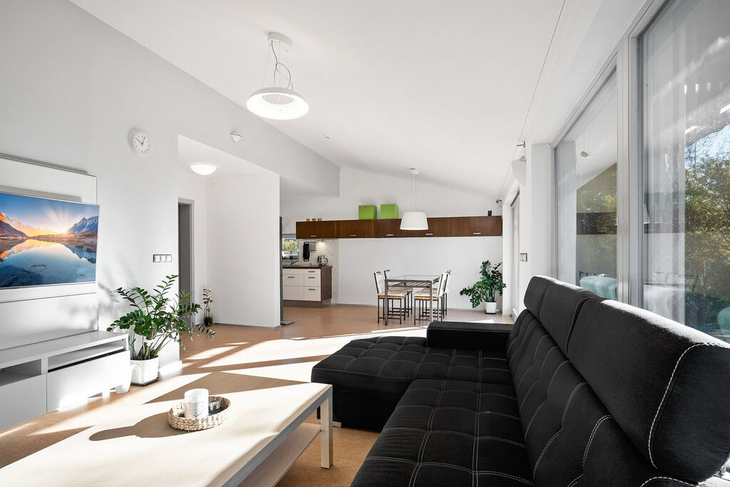 Všechny obytné pokoje jsou orientované na jižní stranu a mají přímý vstup na terasu a zahradu, což dává interiéru skvělé světlo a příjemnou atmosféru po celý den.