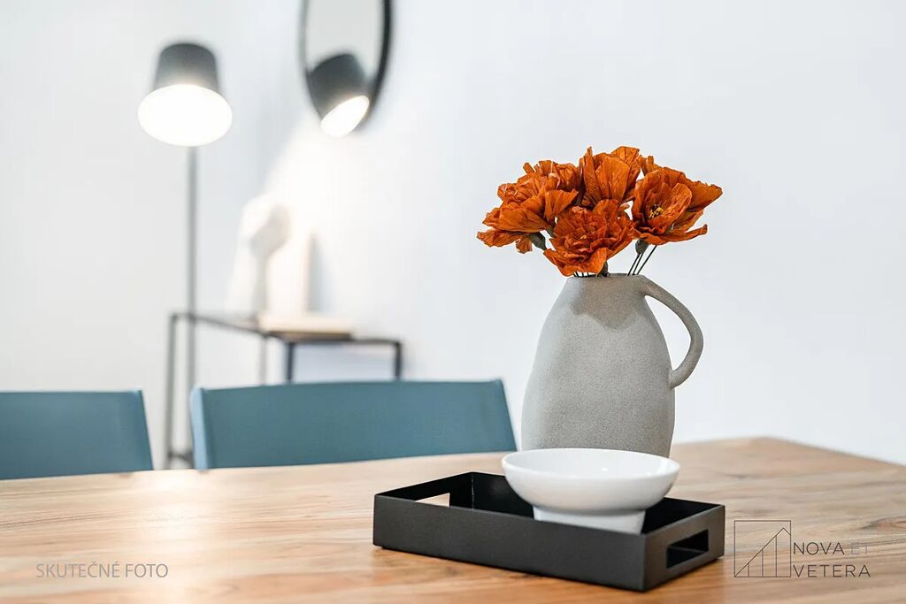 Byt je orientován na jih do vnitrobloku, což zajišťuje dostatek přirozeného světla během celého dne a příjemně klidné prostředí. Dispozice zahrnuje prostorný obývací pokoj s kuchyňským koutem, samostatnou ložnici s komorou navíc, moderní koupelnu se sprchovým koutem, samostatnou toaletu, prostornou předsíň a technickou místnost s dostatkem úložného prostoru.