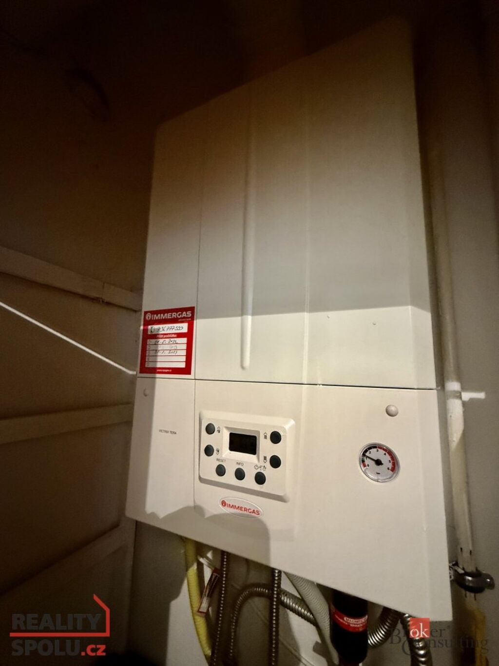Vytápění: Velkou výhodou je vlastní plynové topení (plynový kotel), díky kterému si nájemník sám reguluje spotřebu a náklady na teplo.