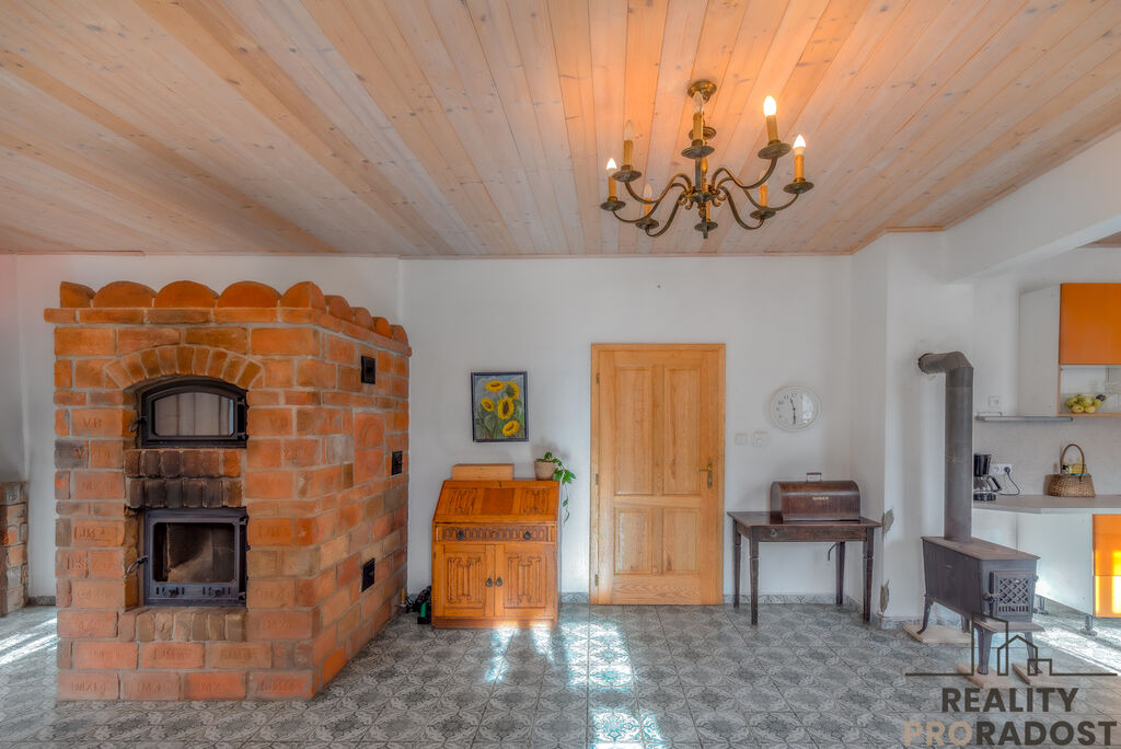 Dům 1+1 a 1+kk prošel rozsáhlou rekonstrukcí. Nová elektřina v mědi, hlíněné omítky malované výhradně vápnem, kompletně nové rozvody vody v plastu. Dole najdete novou koupelnu s vanou, nahoře pak další koupelnu se sprchovým koutem. V přízemí vás okouzlí velká španělská kuchyňská linka, dřevěný strop a krásná odolná dlažba RAKO s nejvyšší třídou PEI 5. Z prostorné obytné místnosti se vstupuje francouzským oknem ven. Topení je řešeno elektrickým kotlem rozvedeným do podlahy, ale k dispozici je i finská pec a kamínka, které vám pomohou výrazně ušetřit.