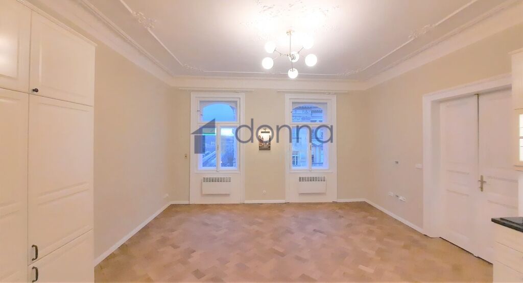 Byt nabízí široký výhled z balkonu na Staré Město, Hradčany, Wilsonovo nádraží a Riegrovy sady. Zateplená špaletová okna, podlahové vytápění v koupelně i WC, původní dubové parkety a vysoké stropy s původními štuky. Kompletně rekonstruováno architektonickým studiem, nové prvky z masivních tvrdých dřevin, španělský stylový obklad a dlažba Mainzu.